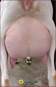 Tori's dam joined our herd in December 2024 and James fell in love with her. She is powerful, deep bodied with tremendous width and depth of body and chest. When she freshened this spring, she had a lovely mammary with a tremendously wide rear udder and escutcheon. AND she gave him twin does.